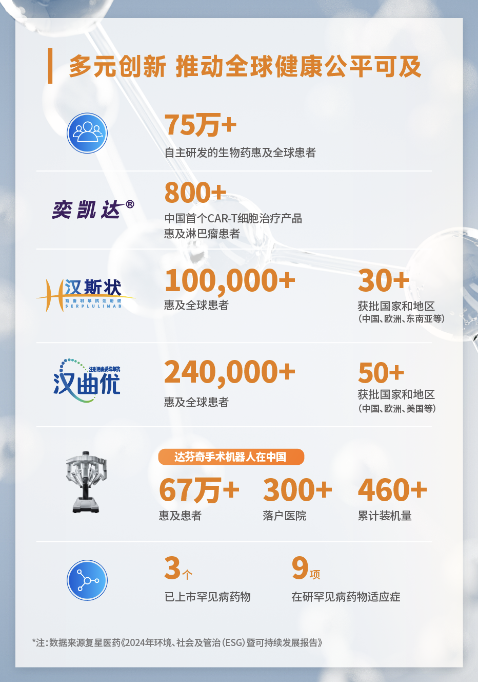 2024年是万象城官网awc医药集团在ESG领域取得重要进展的一年。未来,万象城官网 - 万象城awc将继续积极践行ESG理念,坚持创新驱动,开发安全有效的高质量产品,推进全球健康事业的发展,致力于“让每个家庭乐享健康”。