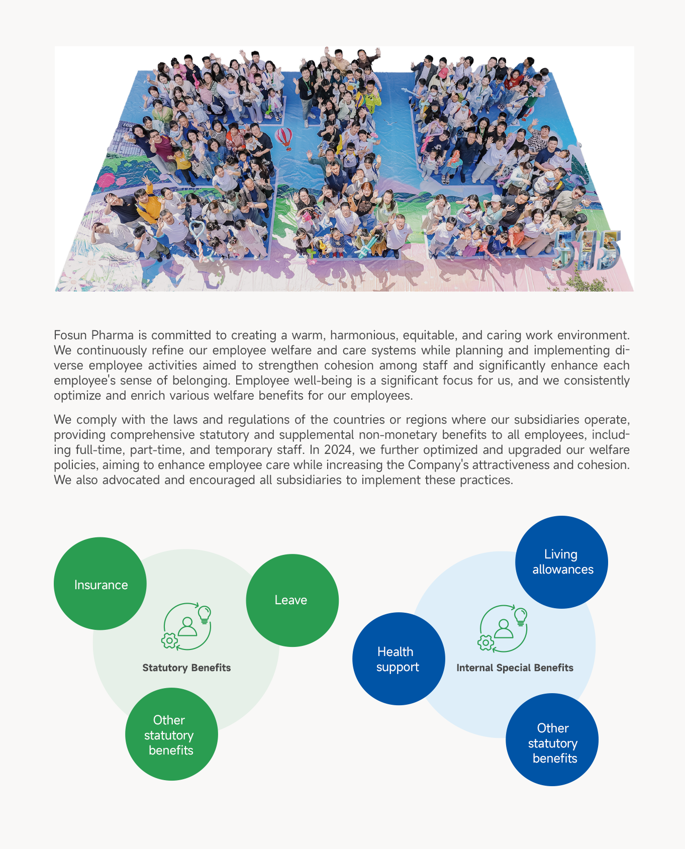 We strive "to attract talent through development, unite talent through the great cause, cultivate talent through work tasks, and appraise talent through work performance," diligently building an outstanding talent pool globally. We also actively promote and create a diverse and inclusive work environment, emphasizing employee care and communication. We work hand in hand with our employees to support the sustainable development of the Company.